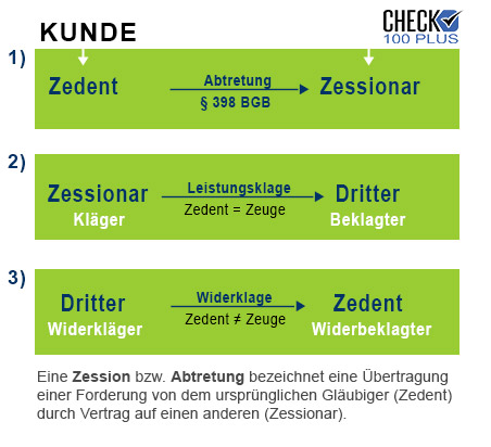 Der Zedent tritt eine Forderung, die er gegen einen Dritten hat, an den Zessionar ab. Nun klagt der Zessionar die Forderung gegen den Dritten ein. Die prozesstaktische Erwägung ist also darin zu sehen, dass jetzt der Zedent als Zeuge zur Verfügung stehen kann, weil er nicht Kläger ist. Der Zessionar ist aber Kläger und scheidet damit als Zeuge aus.